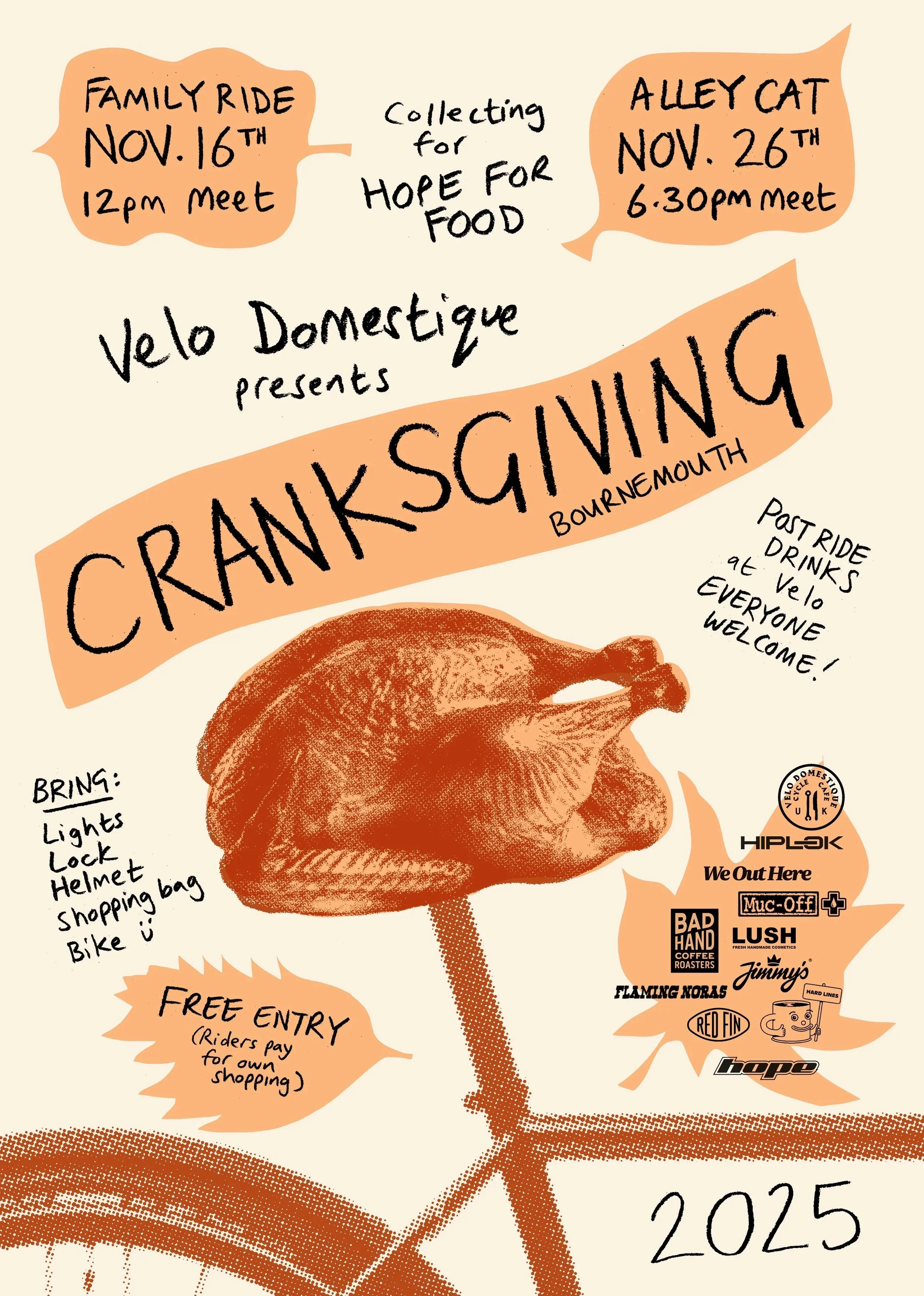 Velo Domestique is hosting Cranksgiving again this year. It is the perfect mix of a bike ride, food shopping and a scavenger hunt all whilst doing something good for the community. All you need to take part is a bike, bag and some money to buy food off your shopping list. All food collected will be donated to Hope for Food.